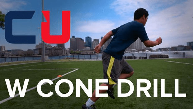 Transcription: “Hi, I’m Coach Molly, I’m a coach at CoachUp. Next we’re gonna do the W cone drill, which is really important for changing directions, to transition from offense to defense. This works with little bit longer sprints, but with a change in direction.”